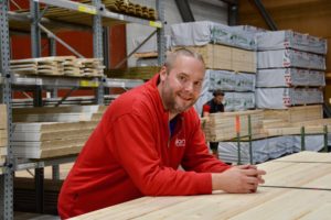 Trebarnsfaren fra Froland plasserer garasjedeler med stor presisjon på paller før de løftes opp på lasteplanet og sendes ut til kunder over hele landet. Når monteringen av garasjen er i gang, er det lite som skaper mer frustrasjon enn om noe skulle mangle eller være feil. Det er Tommys ansvar at det ikke skjer.